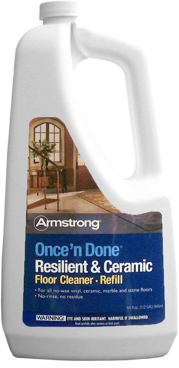 Armstrong Oncen Done Resilient Ceramic Floor Cleaner Concentrate 32oz No-Rinse No-Wax New Package. Spread onto floor with a clean mop. Use 12 cap of armstrong once n done resilient.